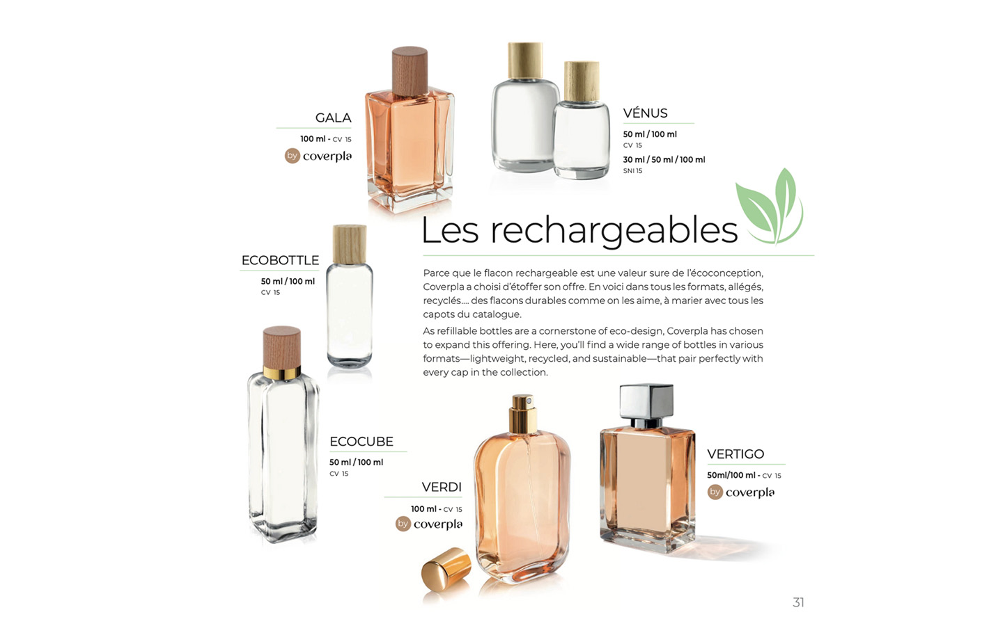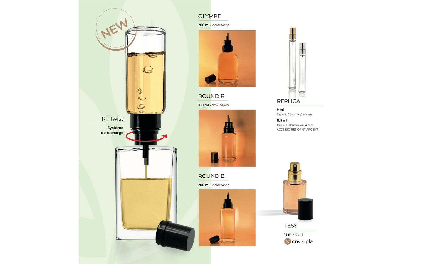 Which can be easily fitted to bottles with screw rings (CV15 or SNI 15). And for refills, Coverpla offers the Round Bottle (100 and 200 ml) and Olympe (200 ml) bottles for their formats and compatibility.